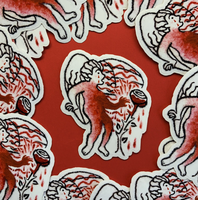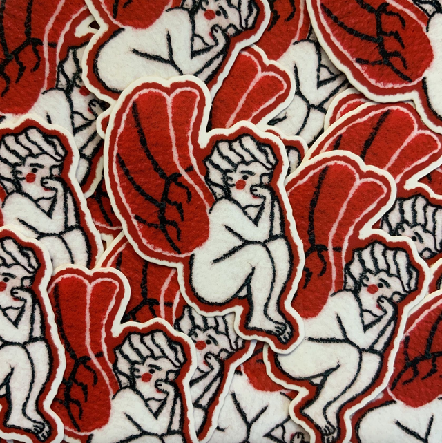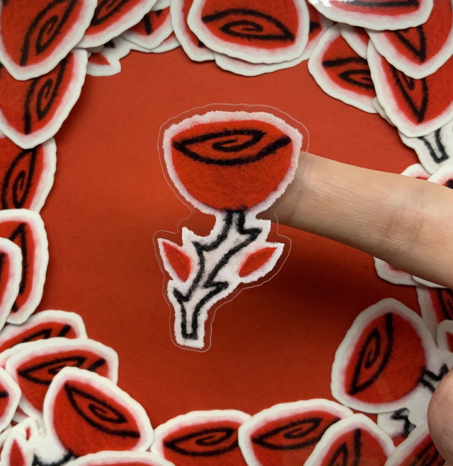 This pack was made from a 2019 comic of mine called "Rosebud", where an outcast cherub gets the power to grow white magical roses. It was made out of felt and acrylic and it's always been a far-off desire in my mind to refine the visuals and make stickers out of them because of their interesting texture and cute/eerie theme!